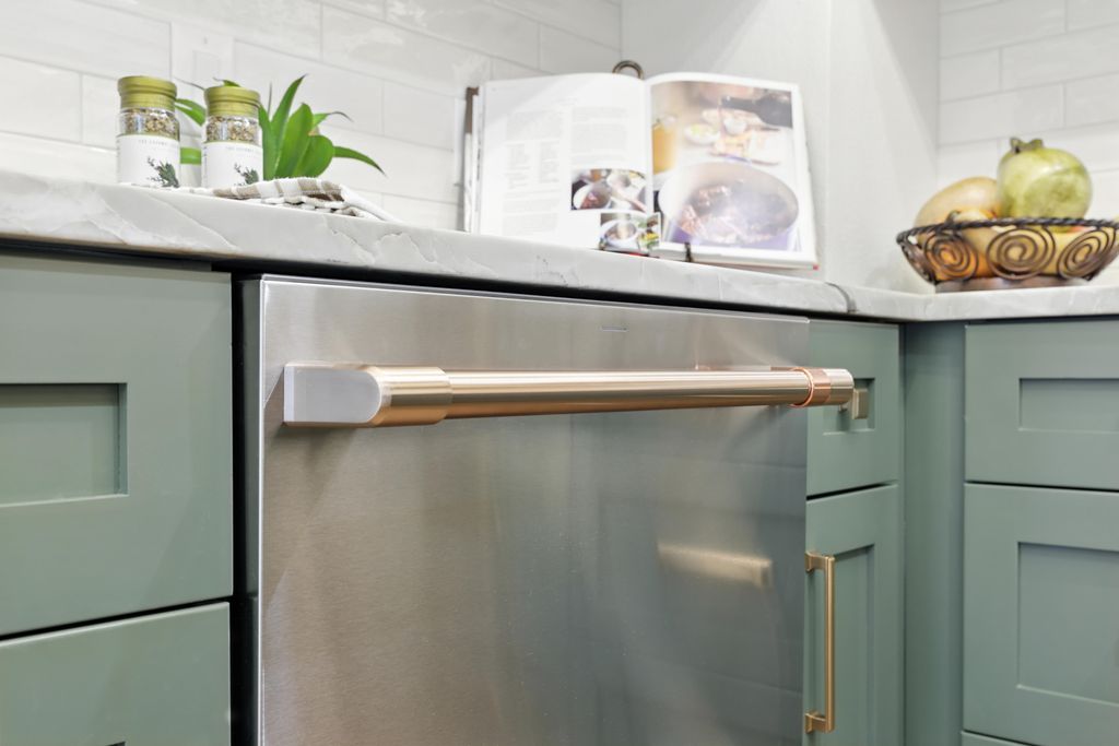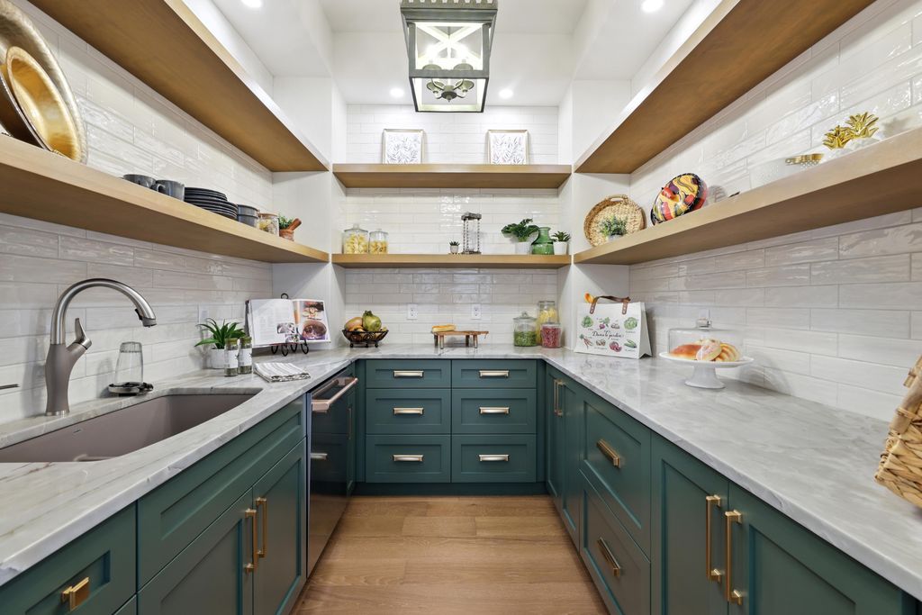 • Custom hand-drawn, cut, painted, and installed cabinets